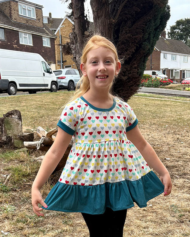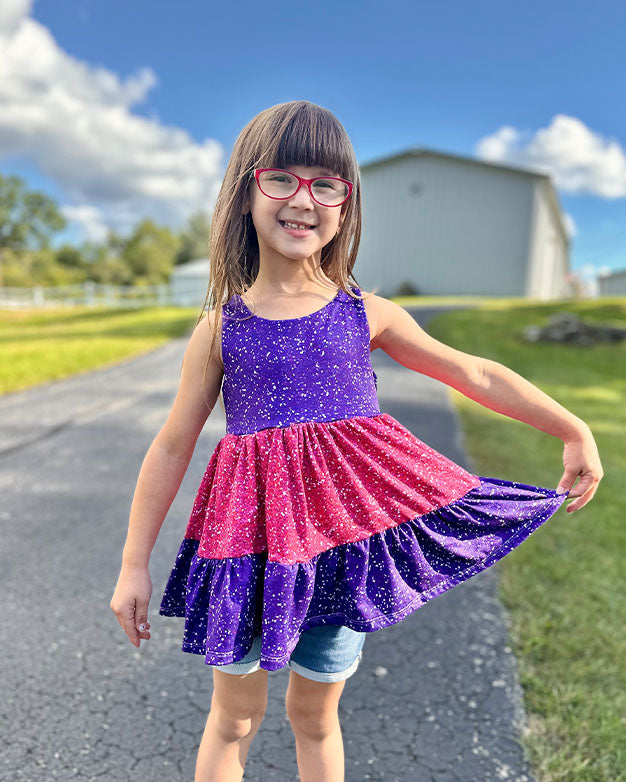 Bring a little twirl and whimsy to your child’s wardrobe with this playful sewing pattern! Designed with versatility in mind, this tiered dolman-style top is perfect for back-to-school outfits and all of fall. Whether your little one is headed to class, the playground, or a fall festival, this top will keep them comfy and stylish.